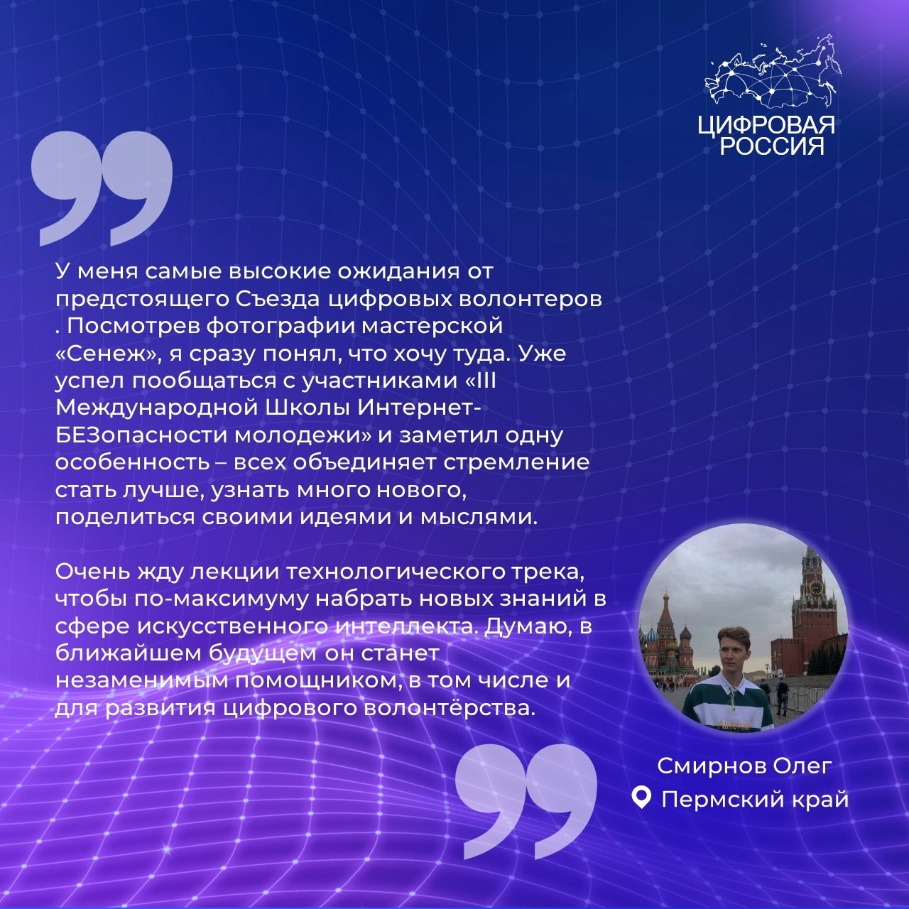 В преддверии события мы решили узнать у ребят, что они ждут от Первого Съезда цифровых волонтеров, который пройдет в рамках «III Международной Школы Интернет-БЕЗопасности молодежи» на площадке Мастерской управления «Сенеж» президентской платформы «Россия — страна возможностей».
