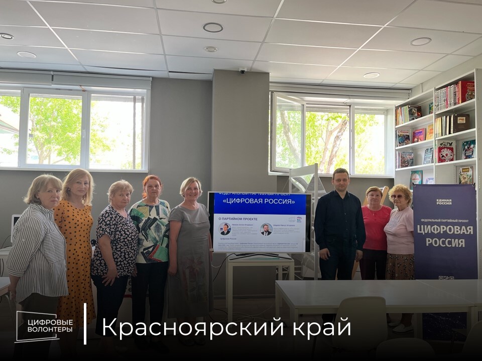 В рамках федерального проекта «Цифровая Россия» волонтёры провели занятие по цифровой грамотности для участников филиала университета «Активное долголетие», который действует на базе библиотеки им. Романа Солнцева в Красноярске.